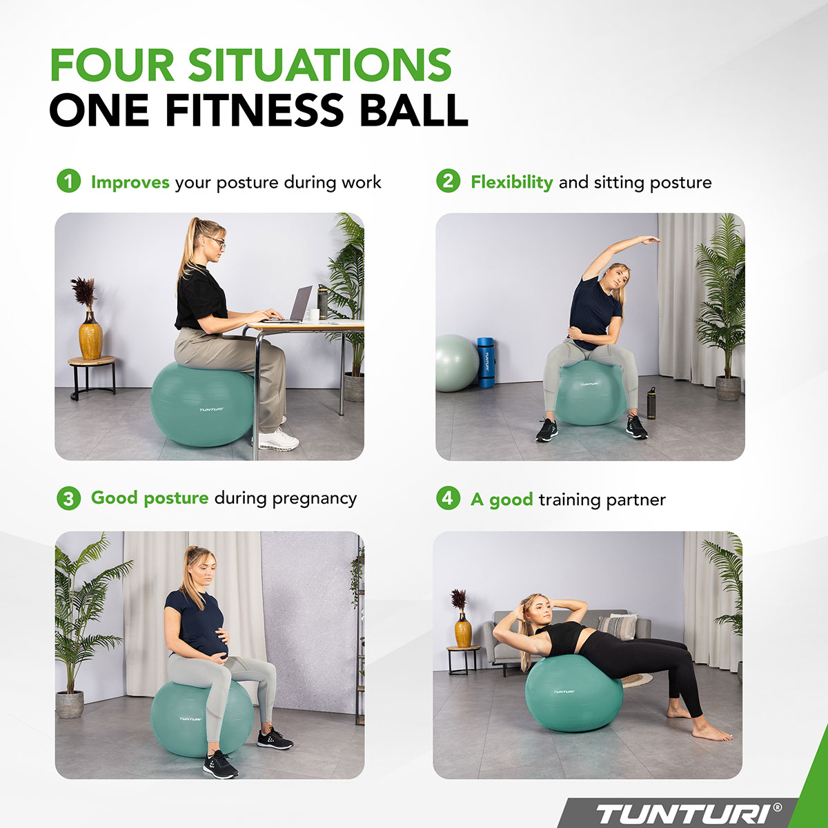 Tunturi Anti Burst Μπάλα γυμναστικής με τρόμπα – Μπάλα Yoga 75cm – Μπάλα για Pilates – Μπάλα εγκυμοσύνης – Βάρος χρήστη 220kg – Περιλαμβάνει εφαρμογή ασκήσεων – Πετρόλ