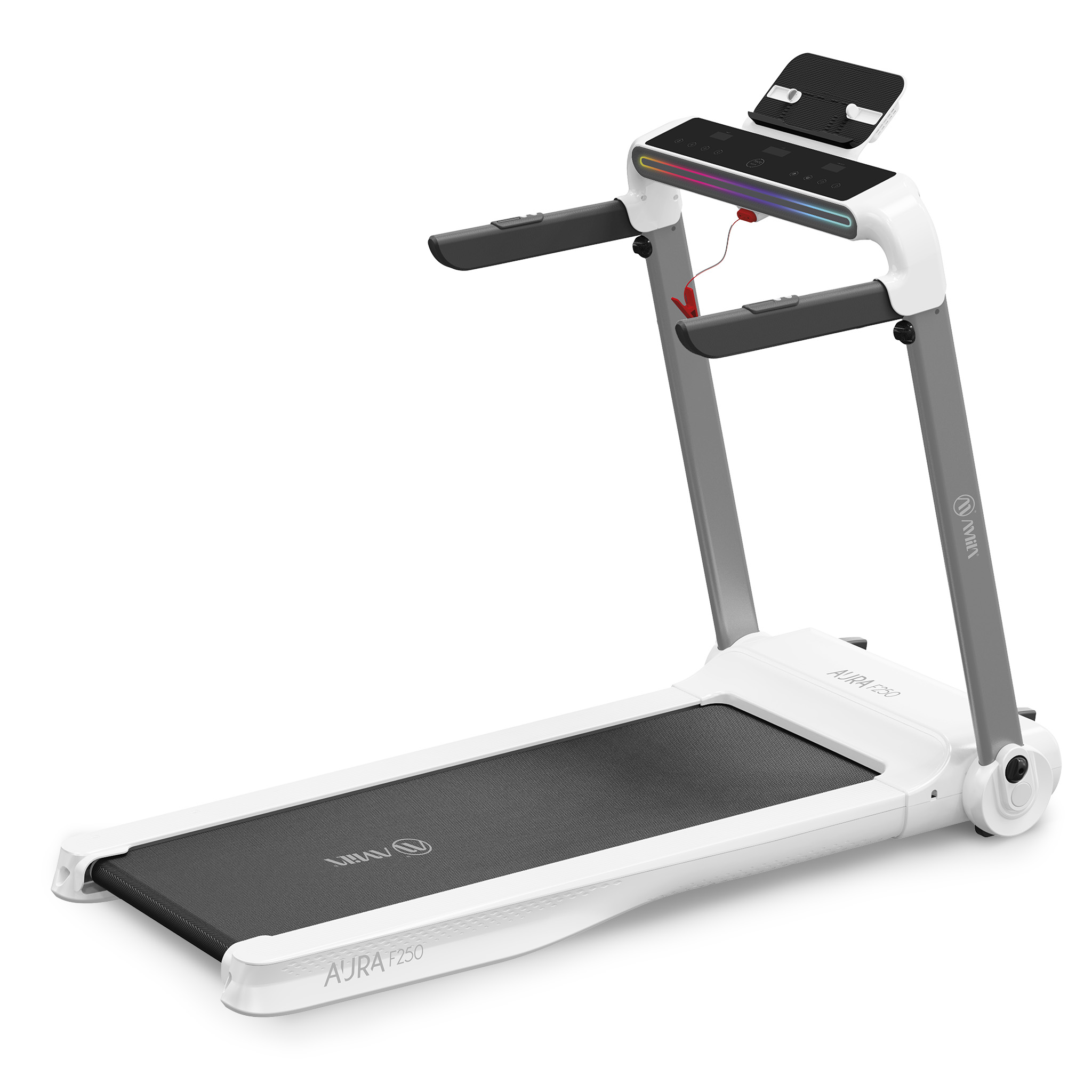 Ο AMILA AURA F250 της AMILA είναι το fitness statement του σπιτιού σου. Με minimal design, LED οθόνη ενδείξεων xρόνoυ, ταχύτητας, απόστασης, θερμίδων και παλμών, έχεις τον πλήρη έλεγχο της προπόνησής σου ενώ η βάση για κινητό/tablet και τα ενσωματωμένα ηχεία κάνουν τον AURA F250 κομμάτι του χώρου σου. Οι compact διαστάσεις του (157,3x77x120,8 cm) και το βάρος των 45kg επιτρέπουν εύκολη μεταφορά, ενώ η δυνατότητα αναδίπλωσης εξασφαλίζει άνετη αποθήκευση, είτε κάτω από το κρεβάτι είτε όρθιο δίπλα στον τοίχο.